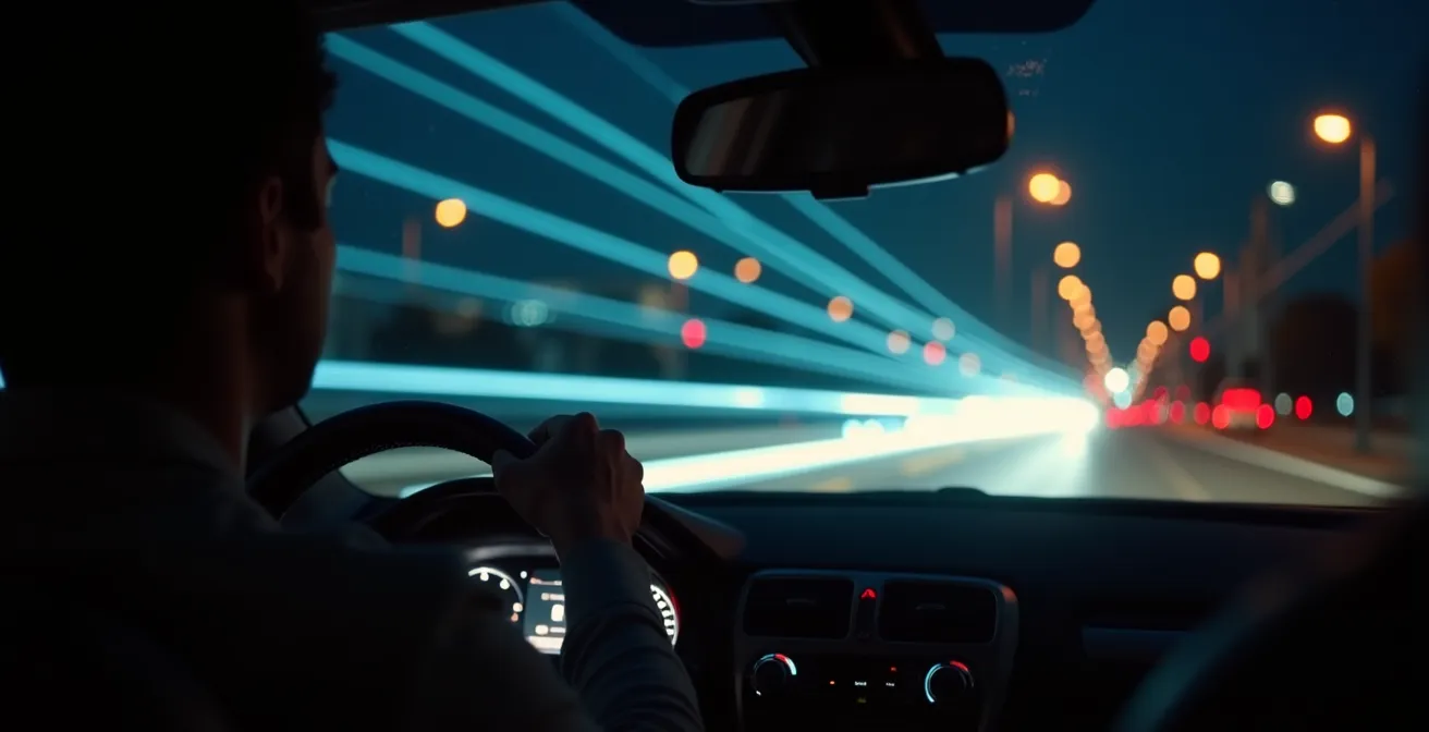 Cette hypersensibilité nocturne au bleu signifie que la lumière des phares modernes vient frapper notre rétine précisément là où elle est la plus vulnérable. Le résultat est une sensation d'éblouissement disproportionnée, des halos lumineux autour des sources de lumière et un temps de récupération visuelle beaucoup plus long après avoir croisé un véhicule. Ce phénomène est particulièrement marqué chez les conducteurs de plus de 60 ans, dont le cristallin a tendance à se troubler et à diffuser davantage la lumière.