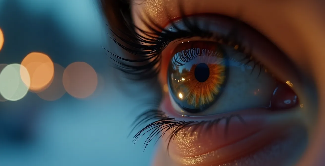 Le premier responsable de votre inconfort visuel hivernal est un mécanisme d'adaptation tout à fait naturel : la mydriase, ou la dilatation de la pupille. Face à la pénombre, votre iris s'ouvre pour laisser entrer un maximum de lumière vers la rétine, exactement comme le diaphragme d'un appareil photo en faible luminosité. Si cette réaction est essentielle pour continuer à voir, elle a un effet secondaire non négligeable : elle met en lumière les imperfections optiques de votre œil.