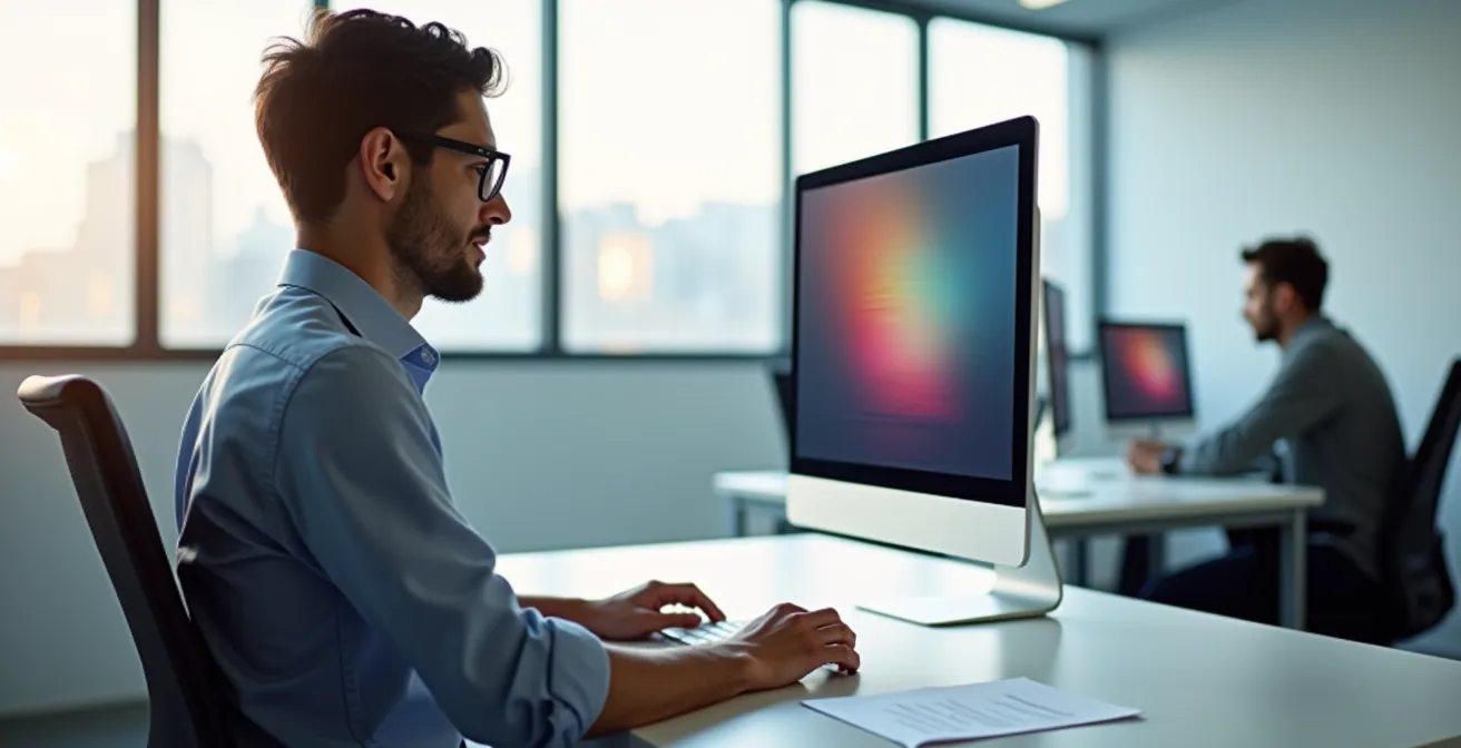 Face à ce flou, votre réflexe inconscient est de vous pencher en avant pour retrouver la distance de netteté de vos lunettes, ramenant ainsi l'écran dans la zone des 40 cm. Cette posture, maintenue des heures durant, crée une tension directe sur les vertèbres cervicales et les muscles du dos. Pour un travailleur de bureau passant en moyenne plus de 32 heures par semaine devant un écran, cette compensation posturale devient une source de douleurs chroniques. Le verre unifocal crée un conflit insoluble : soit votre vision est nette et votre posture est mauvaise, soit votre posture est correcte et votre vision est floue.